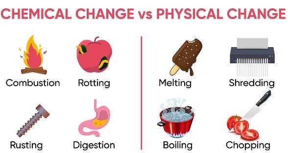 Change in State: Solid, liquid, or gas states may change (e.g., melting ice).
